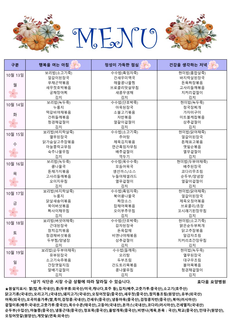 10월 13일~10월 19일 식단표 페이지 정보 작성자 효다움요양병원 댓글 댓글 0건 조회Hit 68회 작성일Date 25-10-10 12:49 본문 . 목록 답변 이전글10월 20일~10월 26일 식단표 25.10.17 다음글10월 6일~10월 12일 식단표 25.10.04 댓글 0 댓글목록 등록된 댓글이 없습니다.