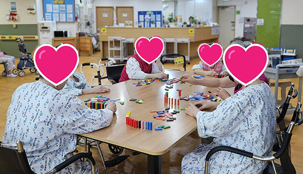 개인마다 인지능력이 다르기 때문에 여러 난이도의 활동을 준비하여 개인에게 맞는 프로그램을 개발 및 적용하여 뇌의 활동에 도움을 줄 수 있습니다. 도미노게임은 무언가를 쌓고 무너뜨리는 과정에서 손과 눈의 협응과 함께 집중이 많이 필요한 활동으로 치매예방 활동에 많은 도움을 준다 |